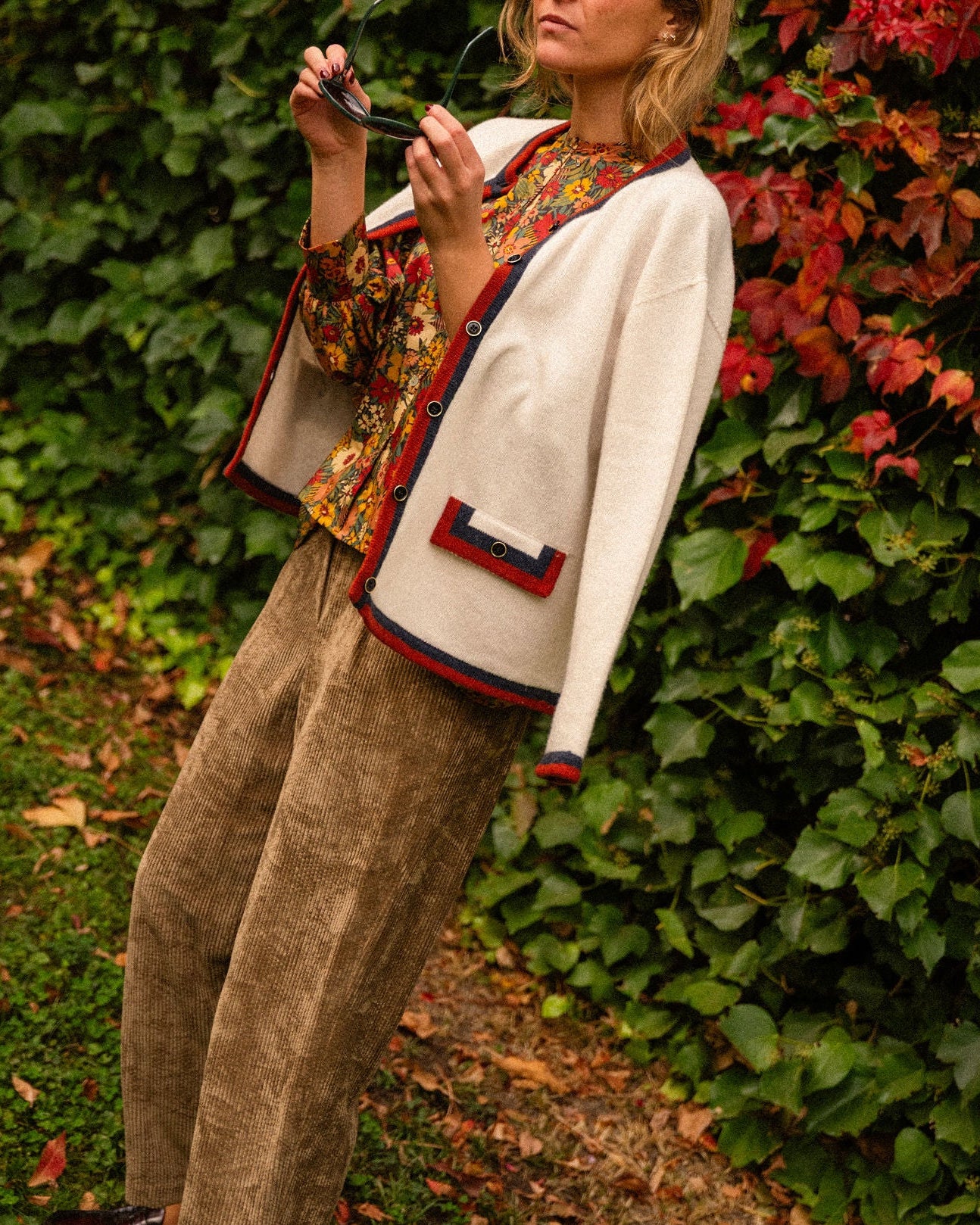 Otra rebeca capricho en color curo con detalles a contraste! De patrón recto y mas larguita. Ideal con falda de punto o con nuestro pantalón crudo para un total look monísimo :)
