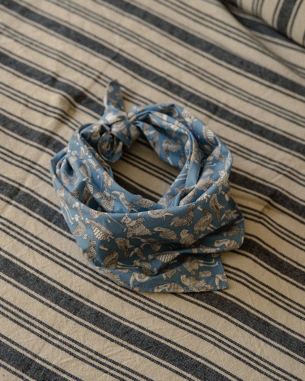 El pañuelito de pájaros sobre fondo azul de Liberty es una monada que os puede encantar.