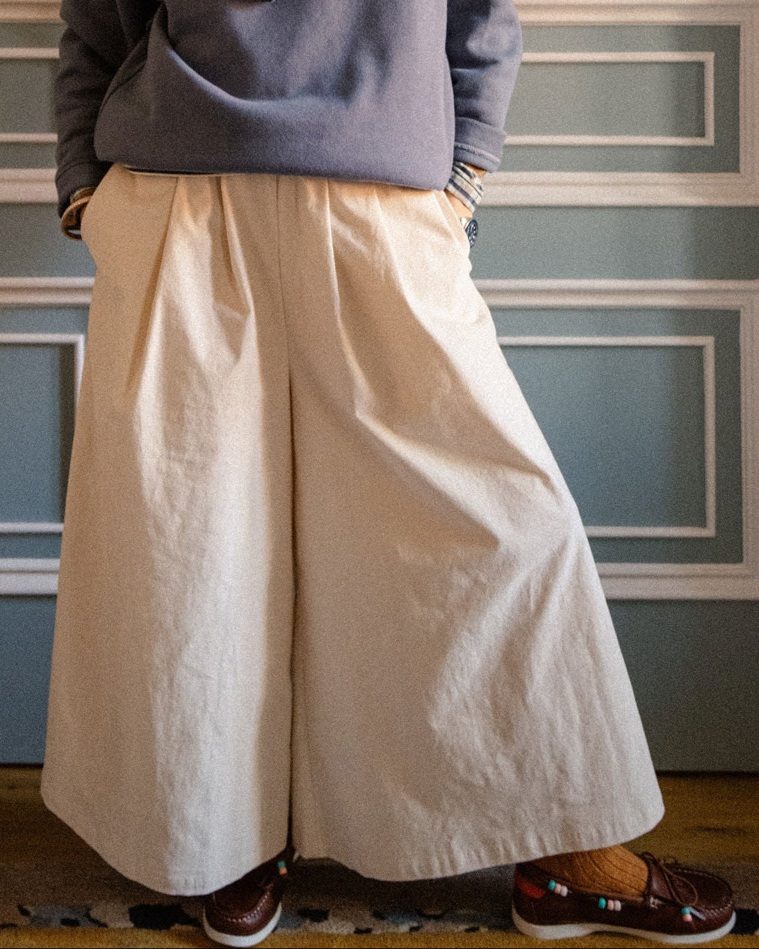 En suave micro pana color crudito, este café de elástico en cintura y bolsillos es un fondo de armario perfecto.