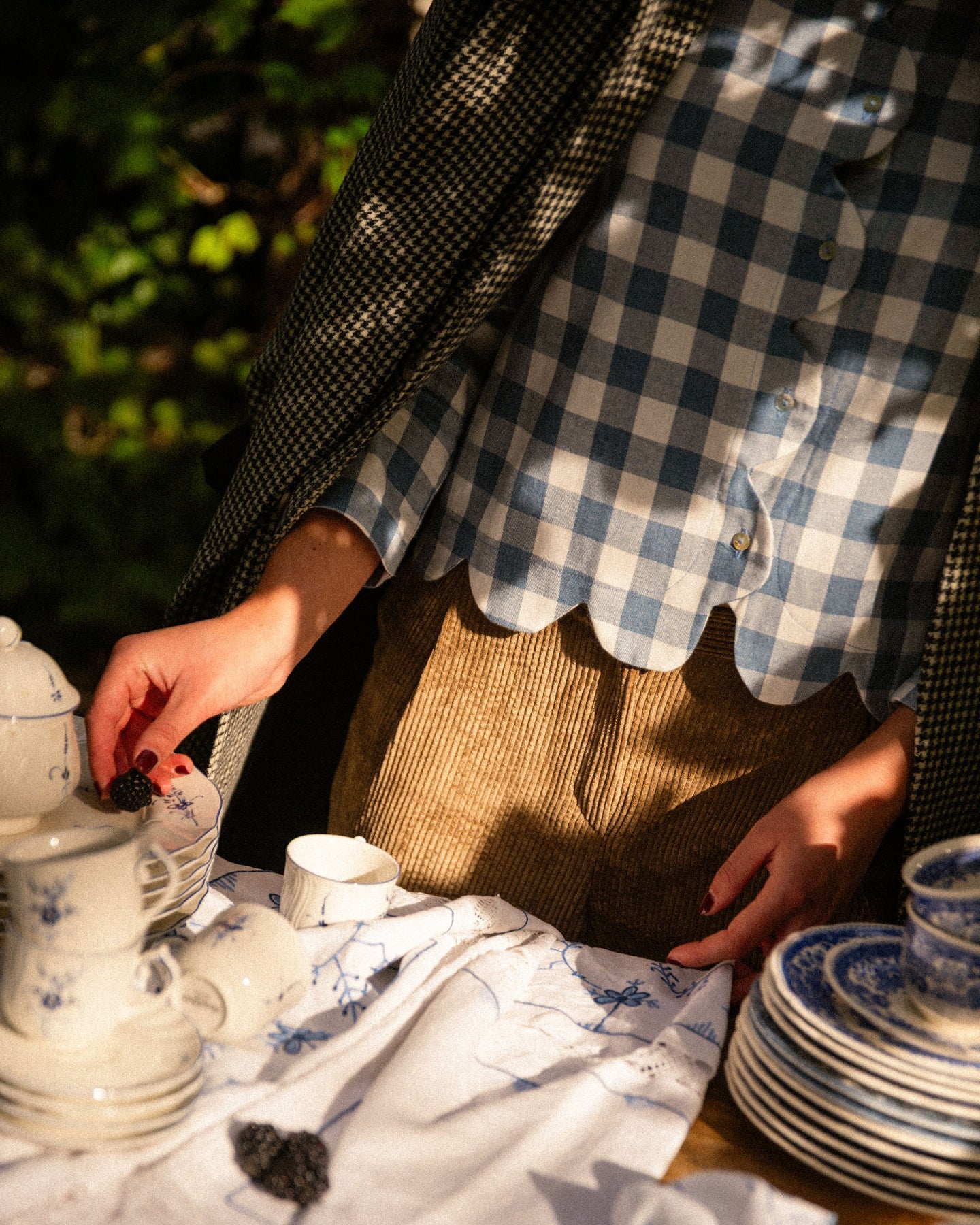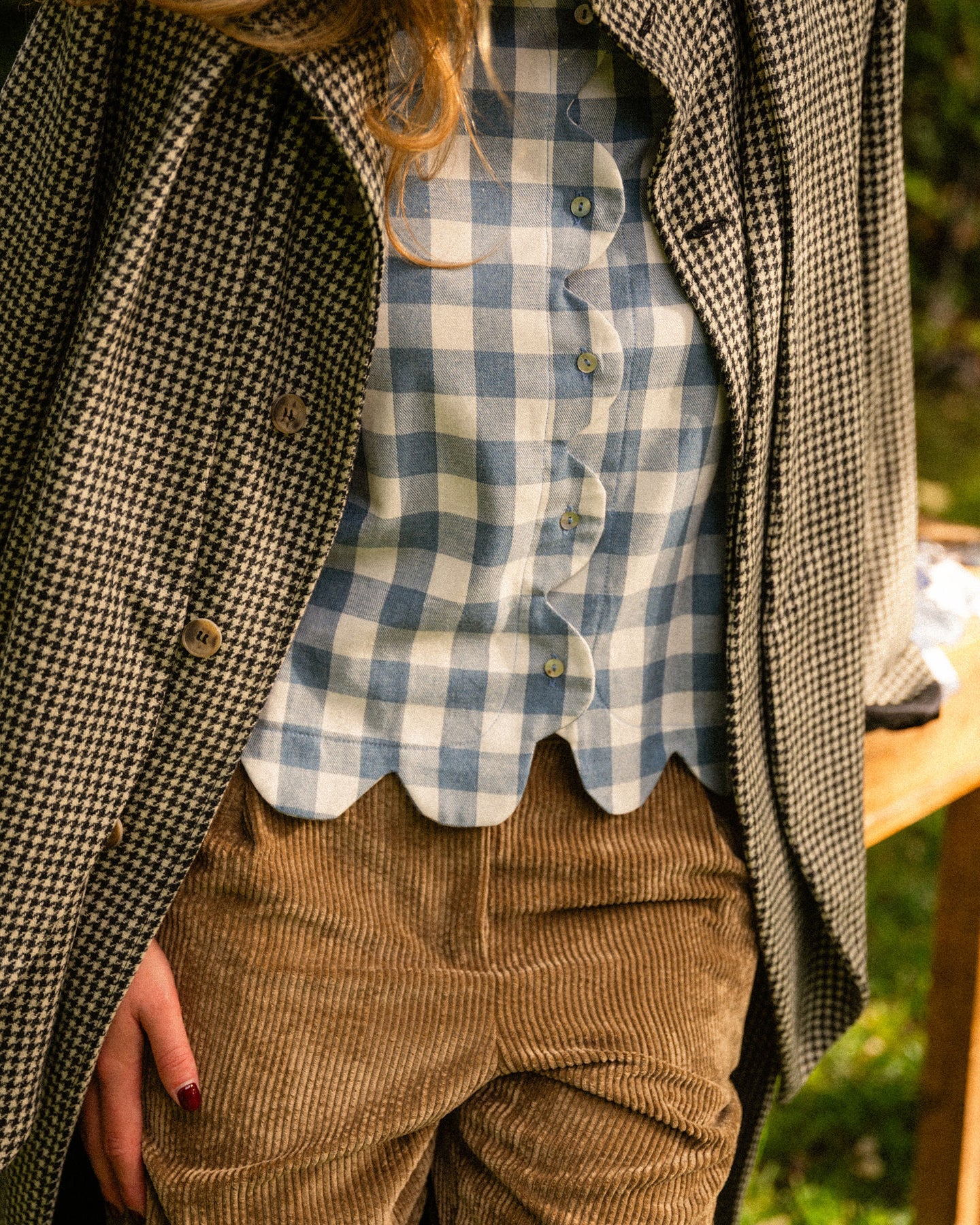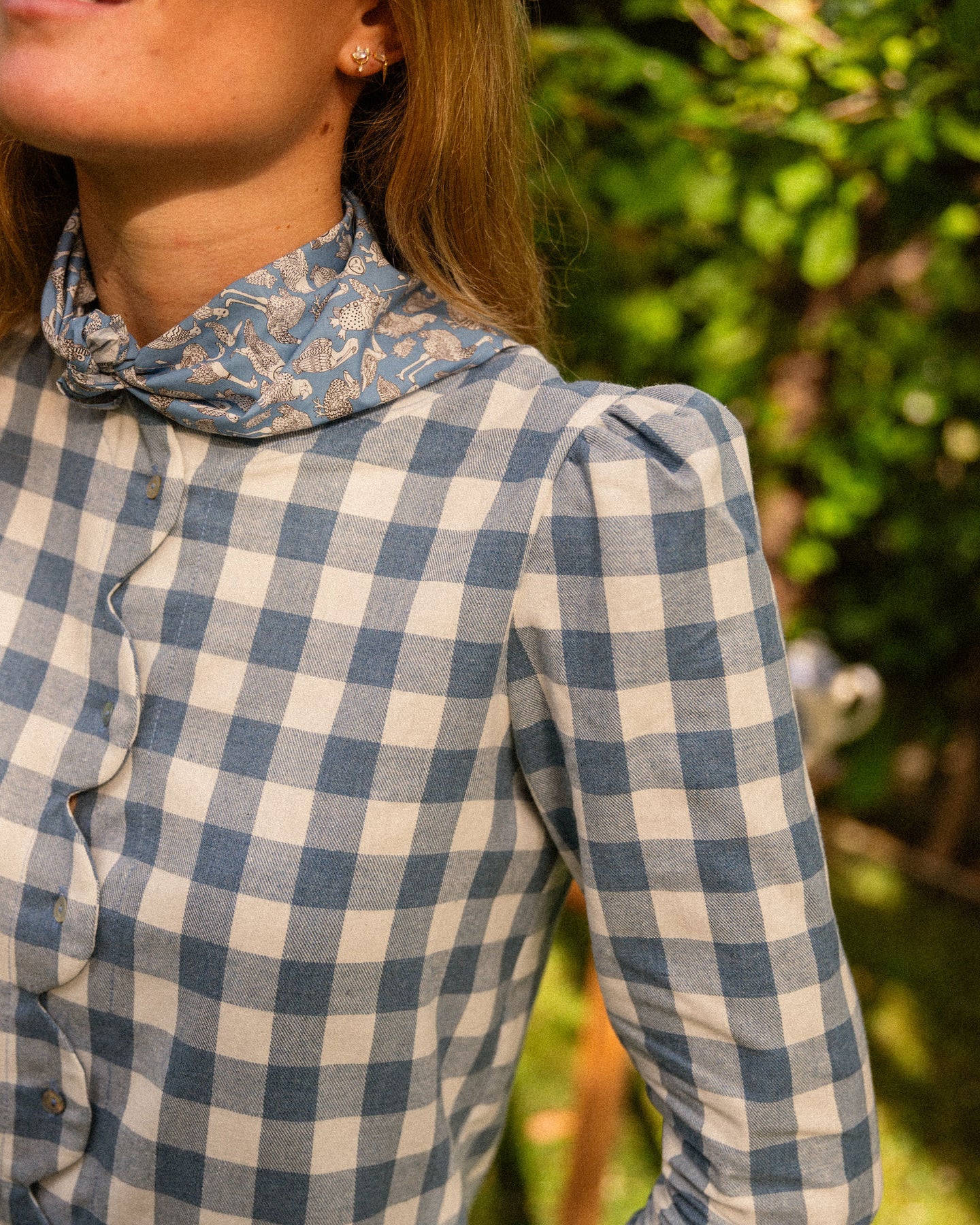 Monadita de ondas en vichy grande azul y crudo. De corte recto, manguita con frunce y cuello caja es una blusa que con pantalón de pana queda ideal en plan sport y con un pantalón más arreglado es perfecta para la oficina.