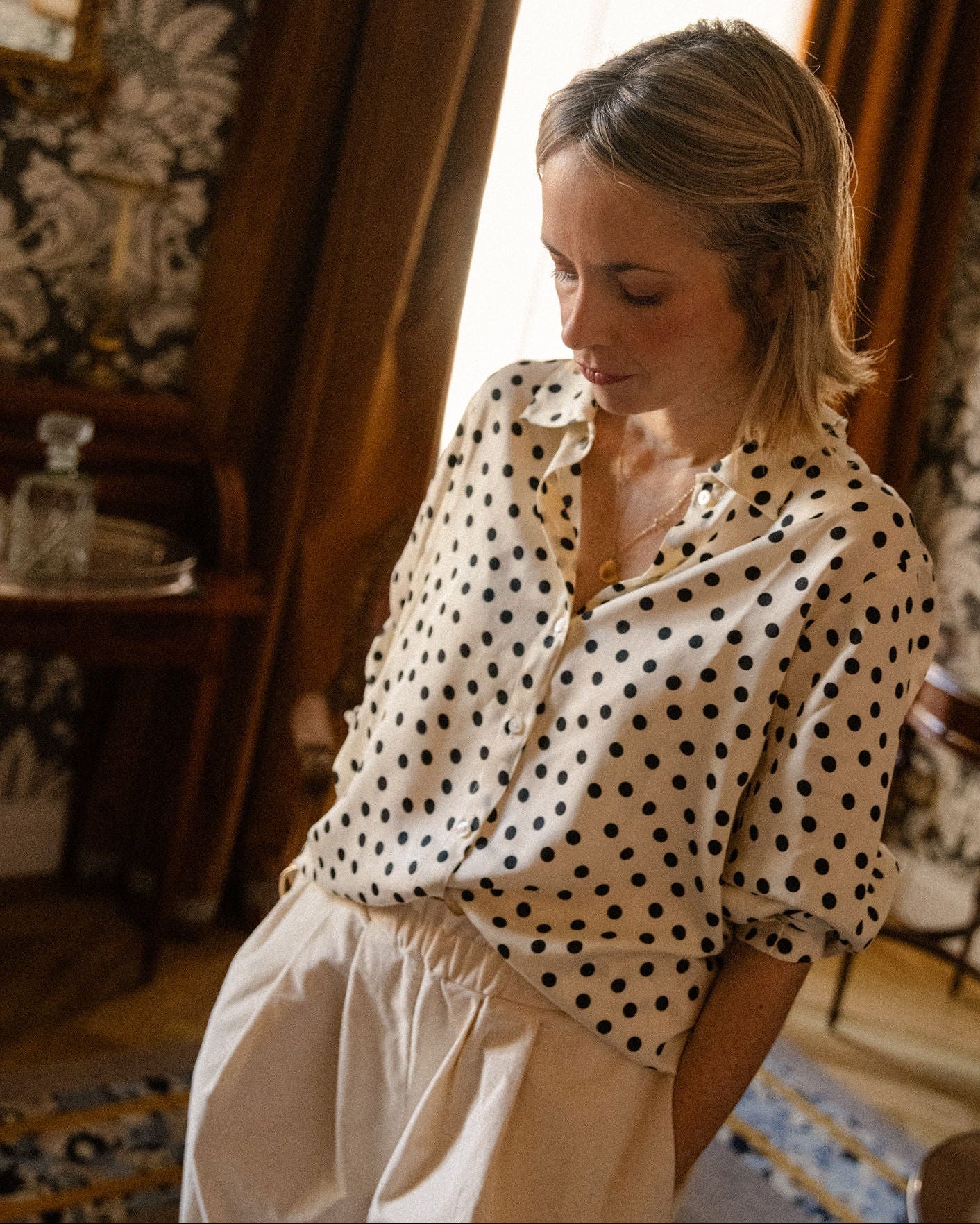 Nos encanta para salir a cenar, y es que el lunar negro sobre fondo crudo va a ser tendencia absoluta, ya lo veréis.