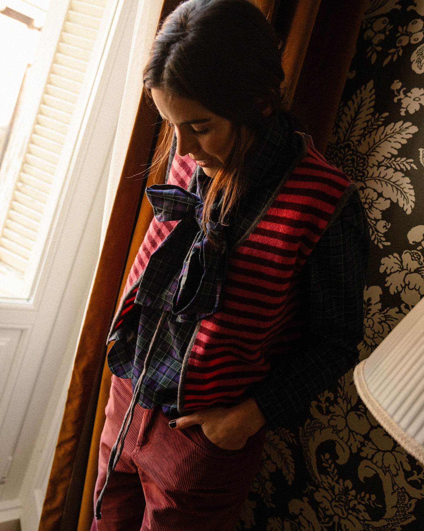 Nos chifla combinada con marino, burdeos, crudo o vaquero y os recomendamos vuestra talla habitual. Anita en las fotos lleva una 36.