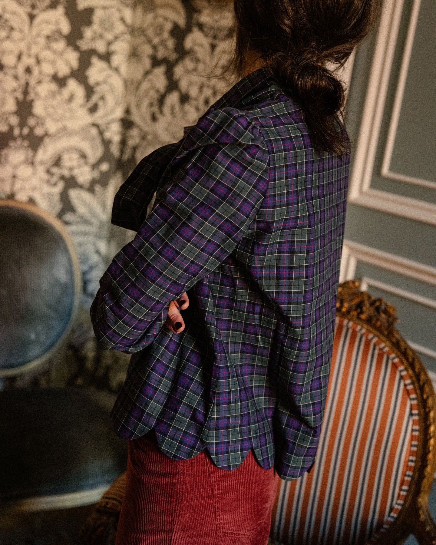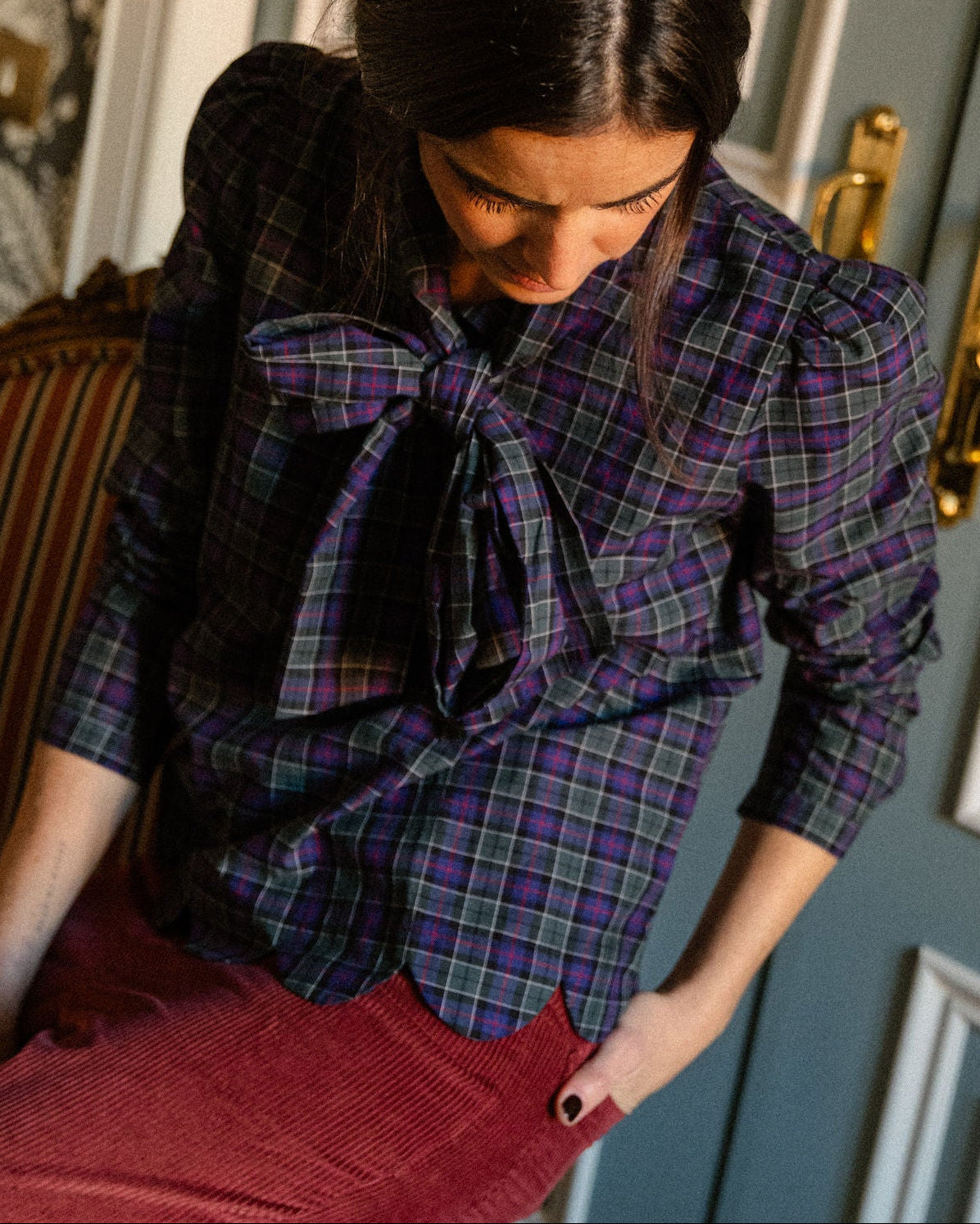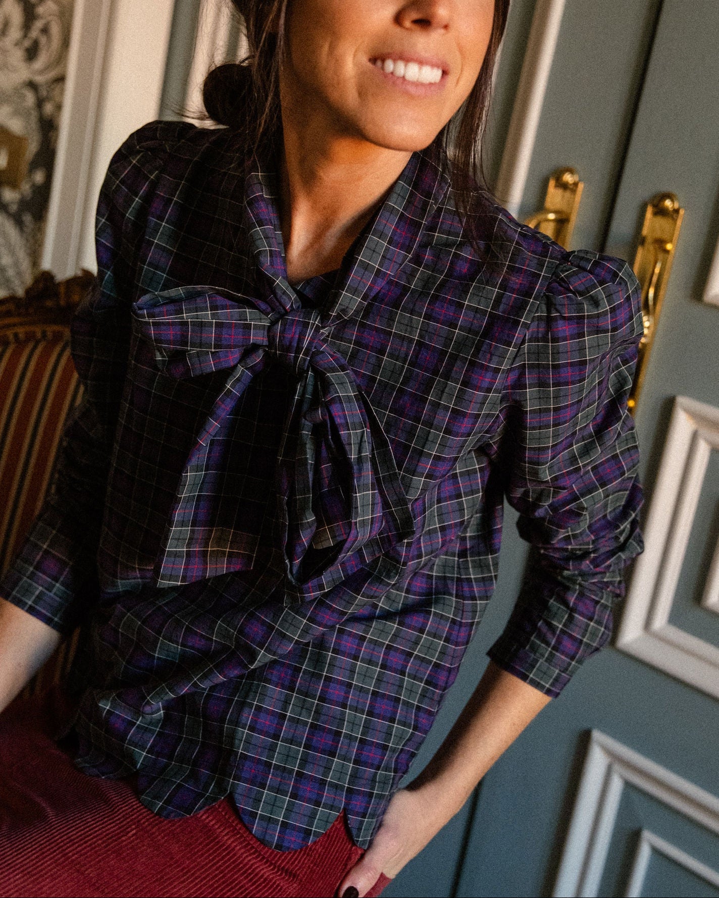 De lazada en el cuello, manga larga y onditas en el bajo, es una blusa ideal para looks semi arreglados de Navidad.