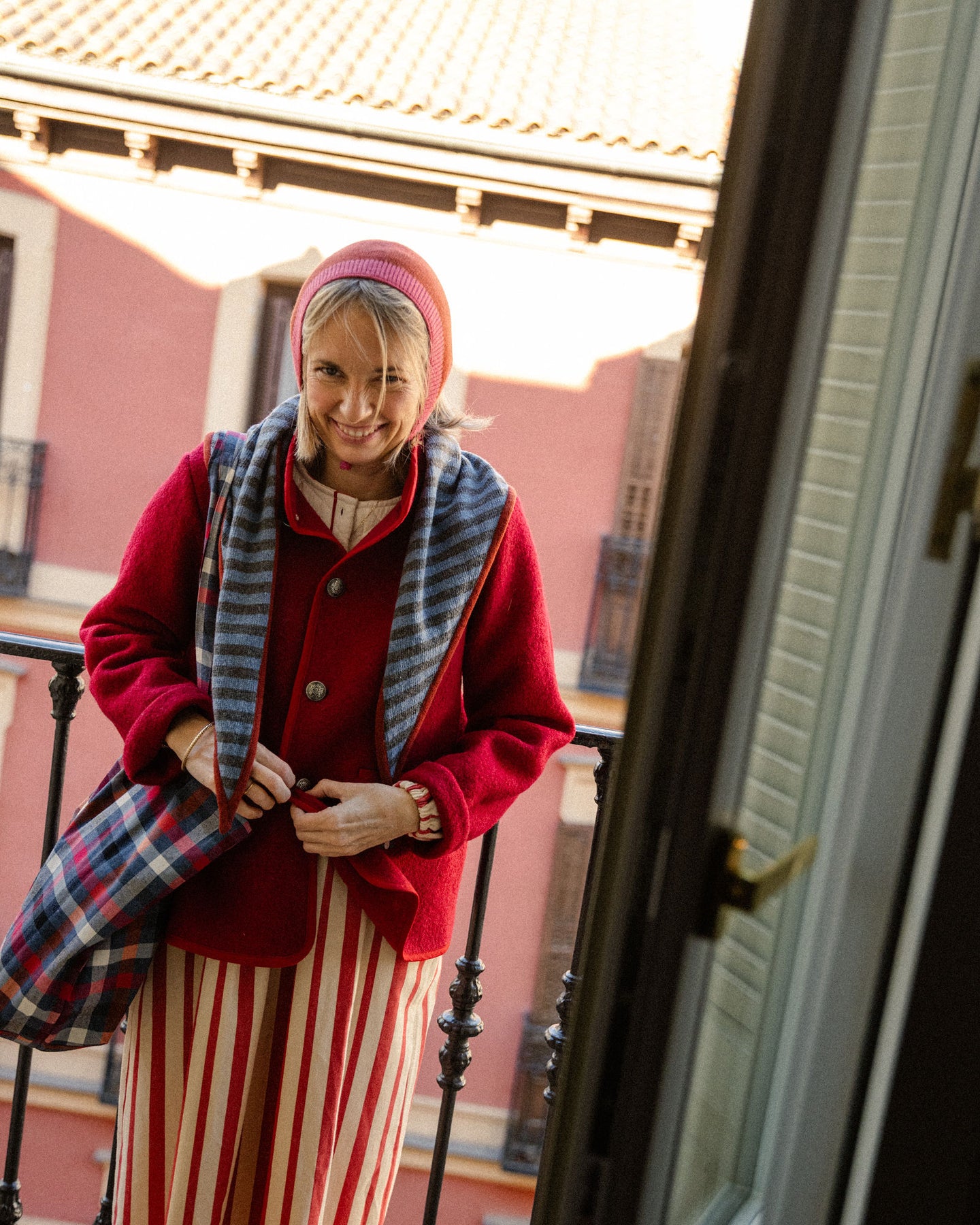 Una capota diferente, que se abrocha con un botoncito pequeño en la barbilla y que resulta perfecta por calentita y especial.